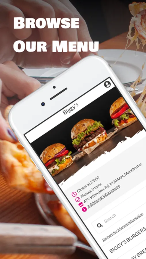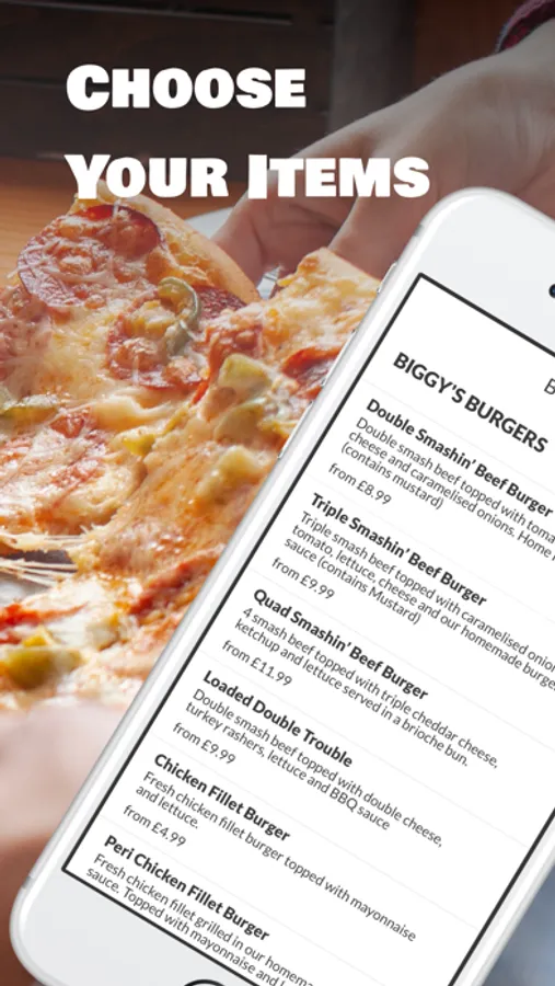 Welcome to Biggy's App. We're in Manchester serving up a blend of Burgers, Pizzas, Kebabs and more!