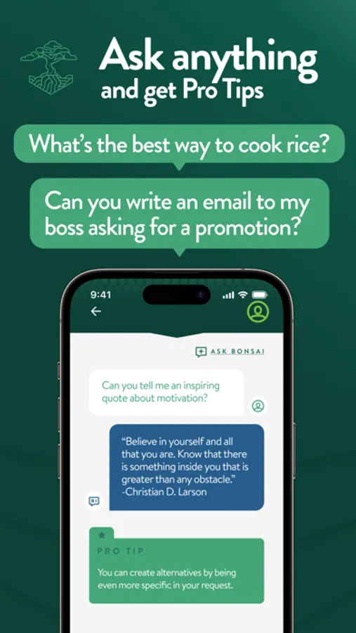 Bonsai is the groundbreaking app that brings the extraordinary power of AI to your fingertips. With its sleek and user-friendly interface, Bonsai revolutionizes the way you seek information and engage in conversations.