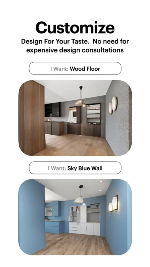- Explore various design styles and make real-time changes to see how they would look in your space.