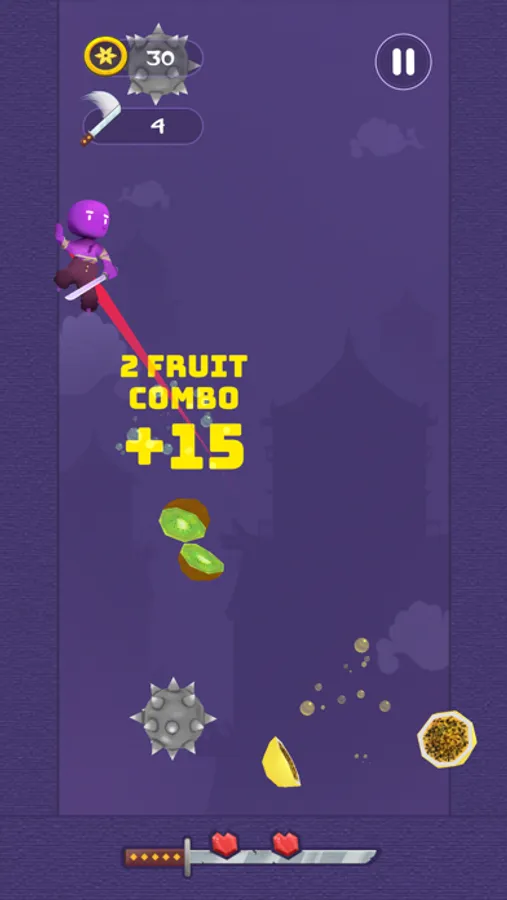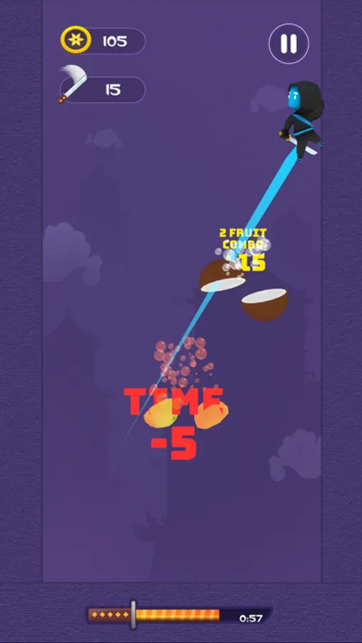 Become a skillful ninja master on this addictive game. Be ready to face exciting challenges while cutting the fruits that are falling above you. There are two game modes, "Time" and "Life" where you can show your cutting skills.