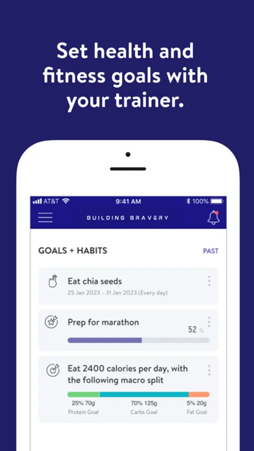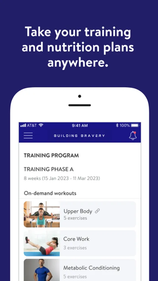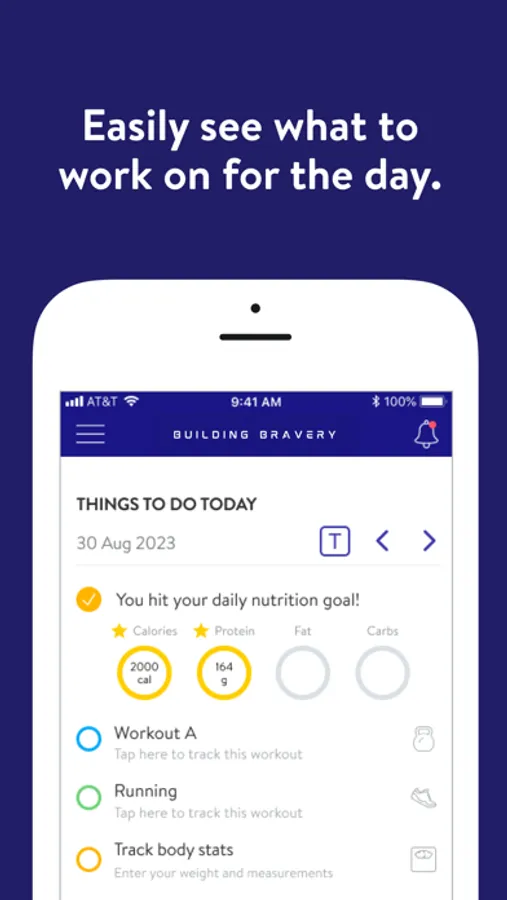 With the Building Bravery App, you will have access to workout programs designed specifically to help you reach your fitness and health goals! You can follow & track your workouts, your nutrition, your lifestyle habits, measurements and results–all with the help of your coach.