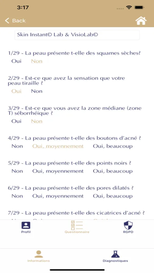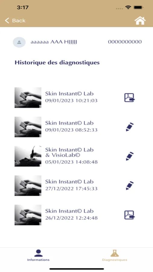 L'application permet par centre d'avoir un listing des clients du SPA. Pour chacun des clients de pouvoir visualiser l'historique des diagnostiques.