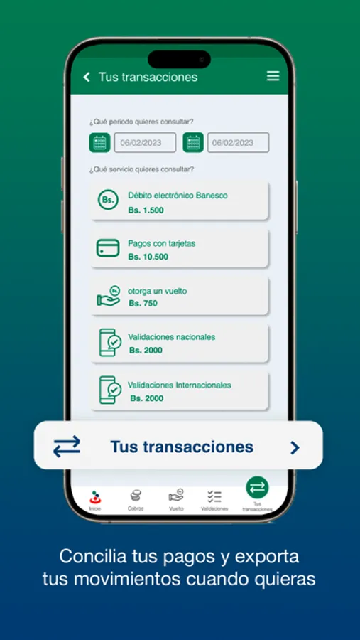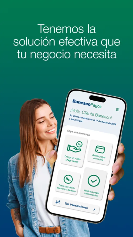 Nuestra app integra y centraliza diversos servicios de cobros y pagos para los clientes afiliados a la Suite BanescoPagos. Con ella, puedes realizar todos tus cobros y pagos electrónicos en un solo lugar y llevar el control de tu negocio sin problemas. Además, con las credenciales que tú le asignes a tus empleados, ellos podrán: