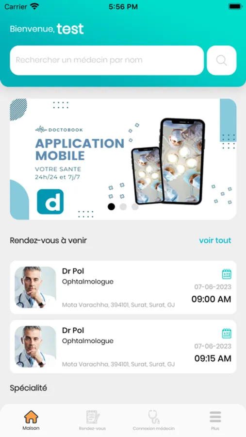 Quelque soit votre besoin, notre application saura vous satisfaire, Nous avons la possibilité de vous mettre en relation gratuitement avec l'ensemble des professionnels de santé : Médecins, Dentistes, Laboratoires d'analyses Médicales et Radiologie, Infirmiers, Ambulanciers, Pharmaciens, et tout autre professionnels de santé.