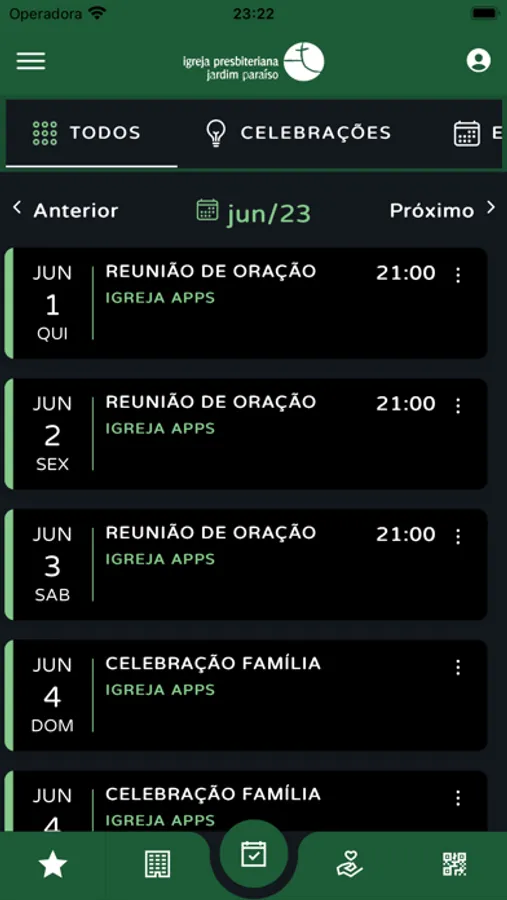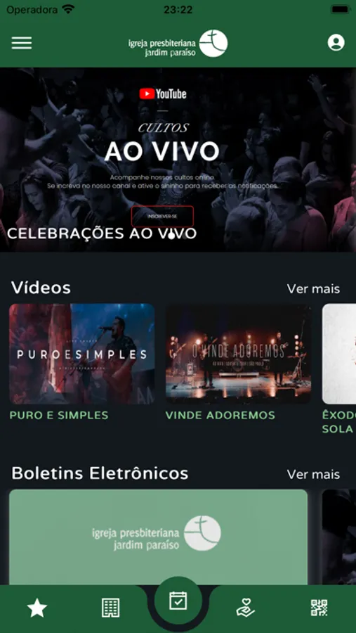 * Conteúdos (Áudio/Vídeo): Permite visualizar e ouvir os conteúdos da Igreja disponíveis no App;