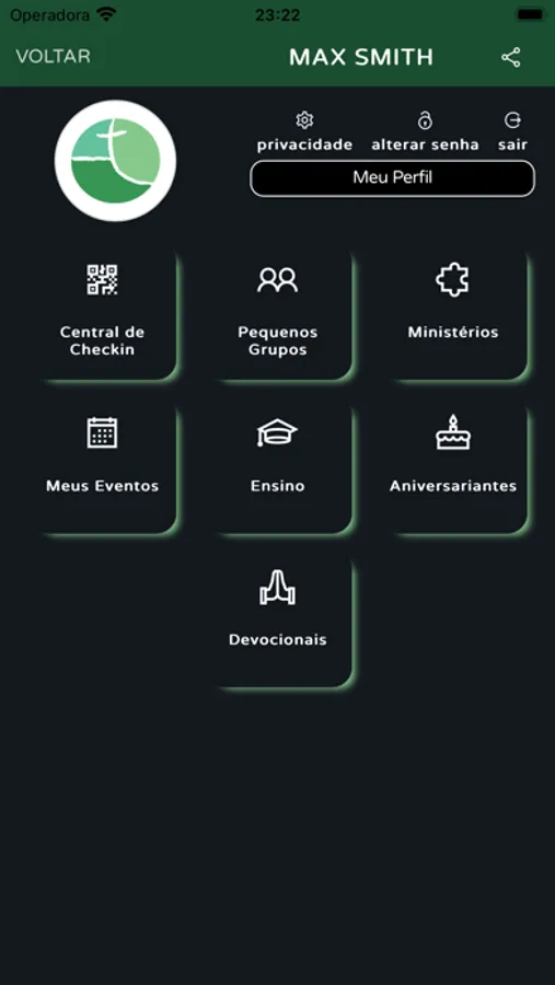 * No item Meu Perfil é possível atualizar seus dados cadastrais na Igreja;