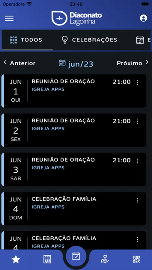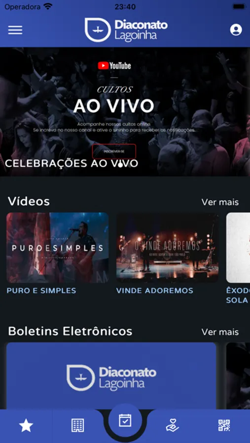 * Conteúdos (Áudio/Vídeo): Permite visualizar e ouvir os conteúdos da Igreja disponíveis no App;
