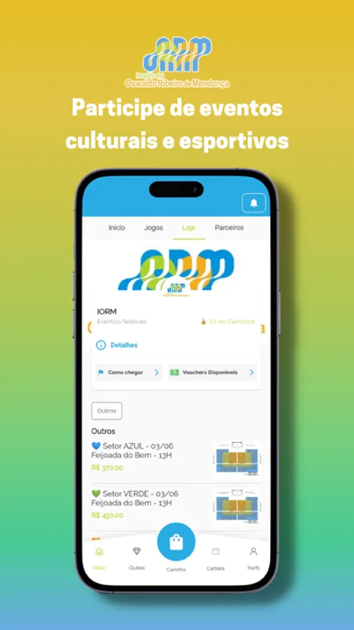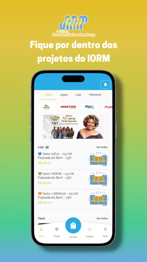 Baixe o aplicativo do Instituto Oswaldo Ribeiro de Mendonça – IORM e fique por dentro de tudo o que acontece nas áreas de cultura, educação, esportes, assistência social e geração de renda em Orlândia, Guaíra, Miguelópolis e Ipuã. Compre ingressos para eventos culturais, esportivos e assistenciais, tenha acesso a produtos exclusivos, fique por dentro de todas as notícias sobre projetos que contribuem para o desenvolvimento integral de pessoas e ainda encontre empresas que apoiam as iniciativas do IORM e oferecem descontos exclusivos para os usuários do aplicativo. Seja parte da transformação e contribua com o desenvolvimento integral de crianças, adolescentes, jovens e suas famílias em todas as suas dimensões – intelectual, física, emocional, social e cultural.