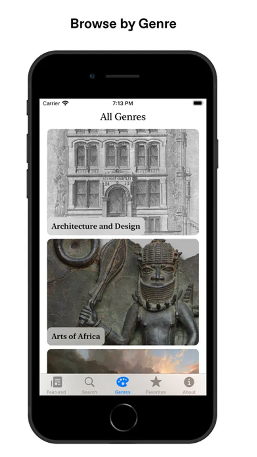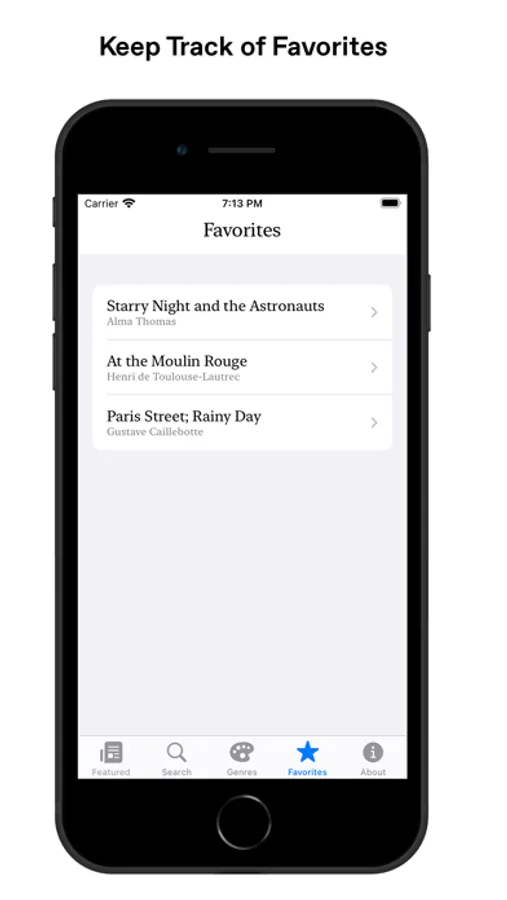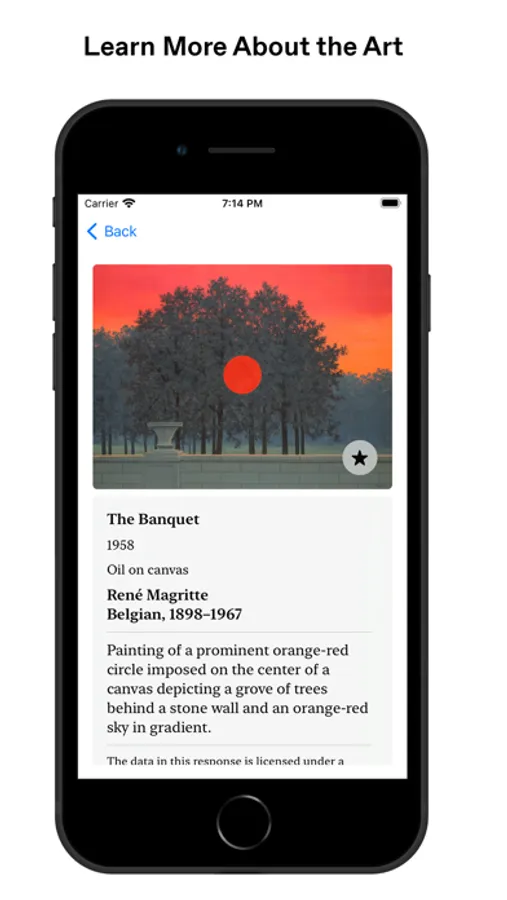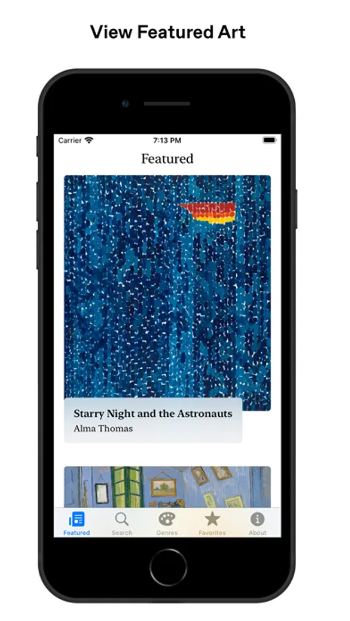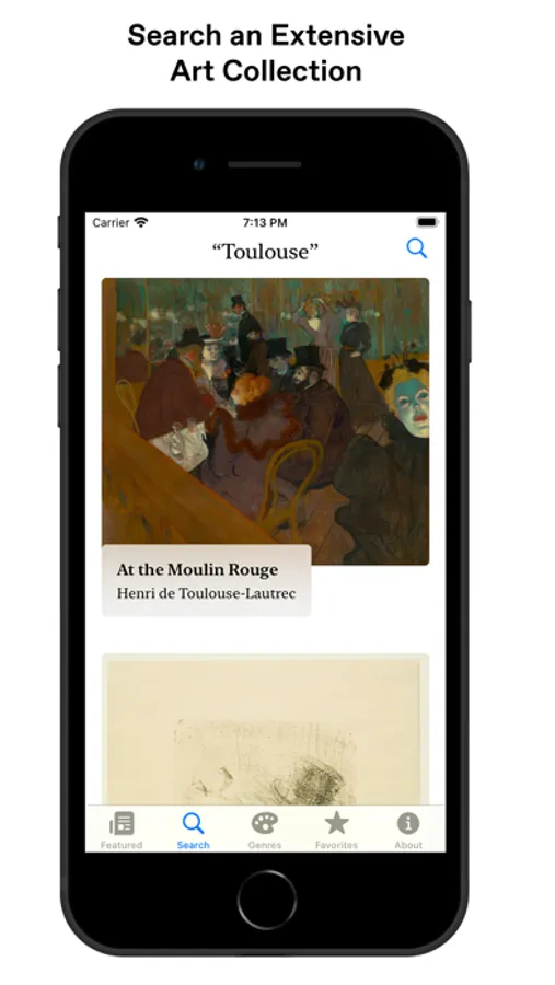 This app searches through an online collection of artwork and allows you to find and add art to your personal 'collection.'