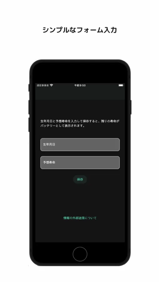 生年月日と予想寿命を入力するだけで、あなたの「残りの寿命」をバッテリーの形で表現します。