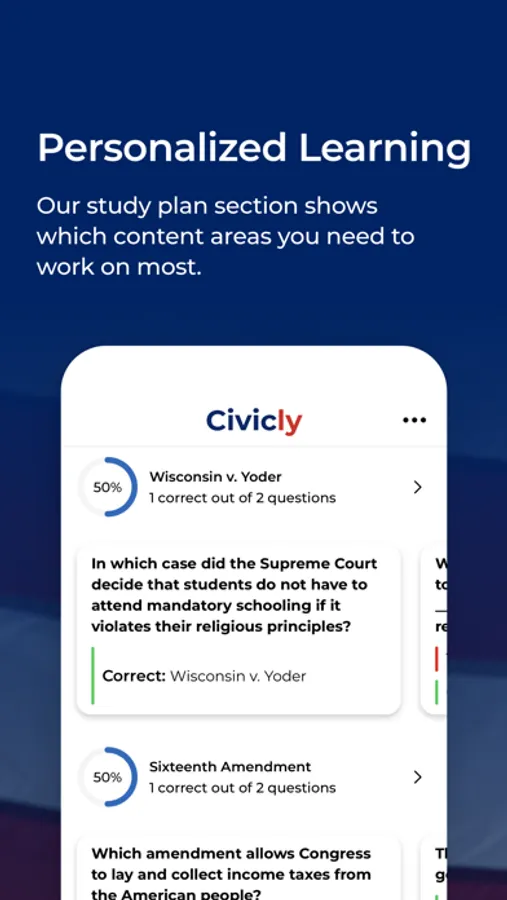 • Personalized Learning: Civicly smartly identifies gaps in your knowledge. Visit the study plan section to see your personalized guide toward mastery.