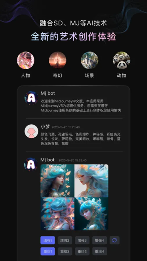 欢迎来到我们的AI绘画应用!我们采用先进的AI技术,为您提供一个全新的艺术创作体验。在我们的应用中,您可以轻松地创造出美丽、独特的艺术作品,无论您是艺术爱好者还是专业画家。