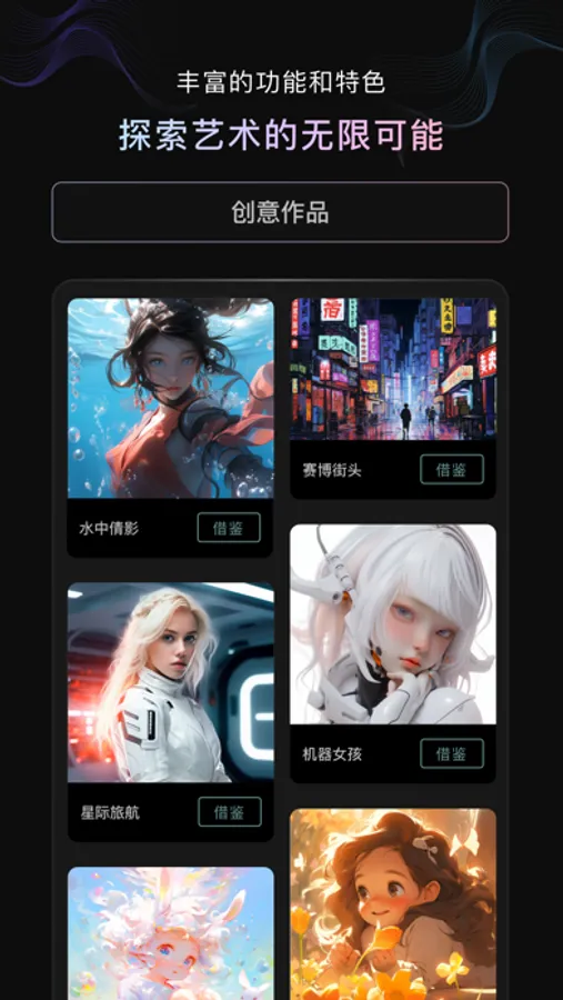 我们相信,我们的AI绘画应用将会为您带来无穷的创意和乐趣。不论您是寻找创作灵感的艺术爱好者,还是想要扩展您的艺术创作领域的专业画家,我们都欢迎您来尝试我们的应用。让我们一起探索艺术的无限可能!