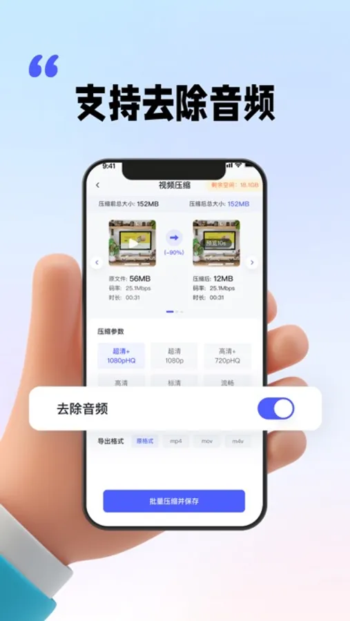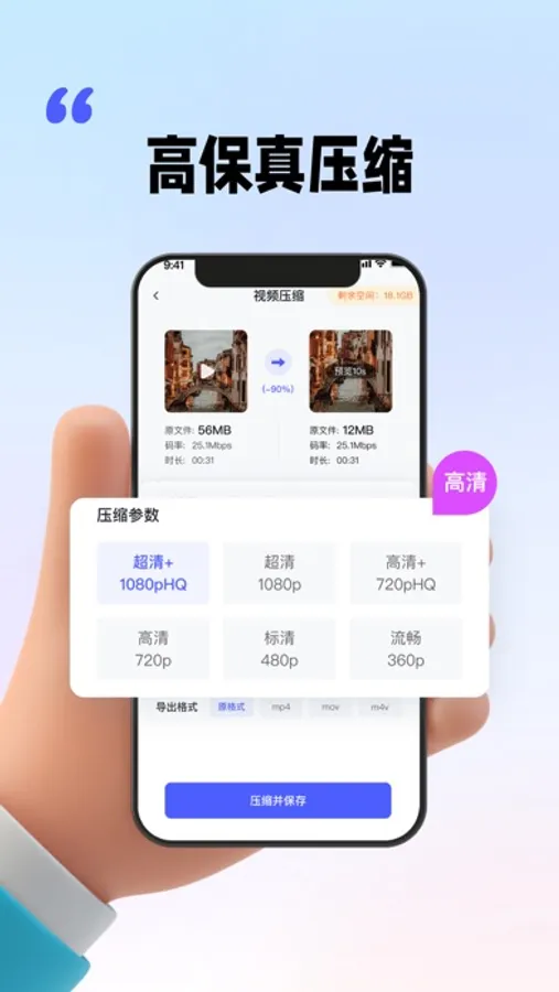 8、可自定义视频压缩清晰度,支持480P720P1080P