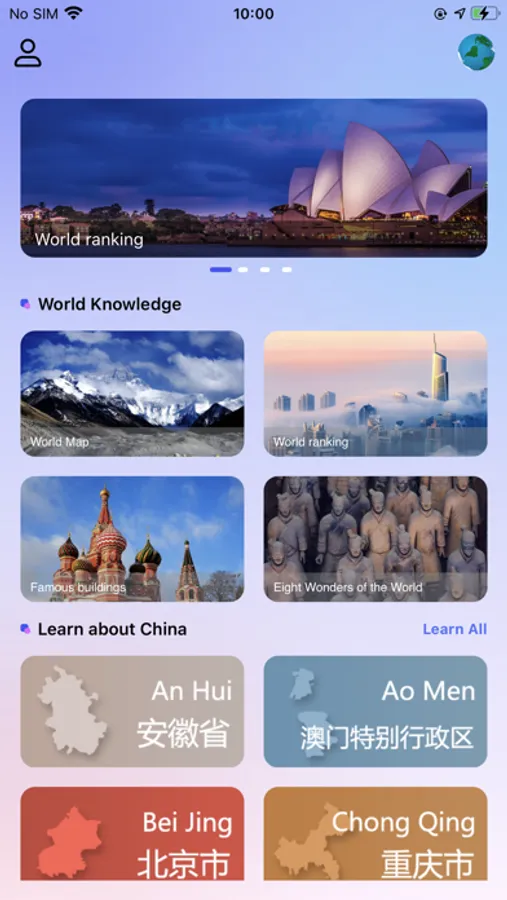 contains 3D maps, world maps, maps of each province in China, cultural background, food and attractions. At the same time, it contains a lot of little knowledge, such as the world's most, famous buildings, eight wonders and so on.