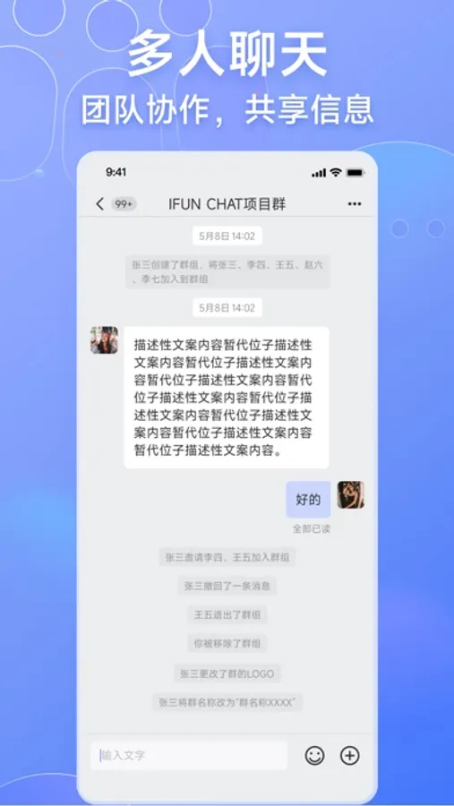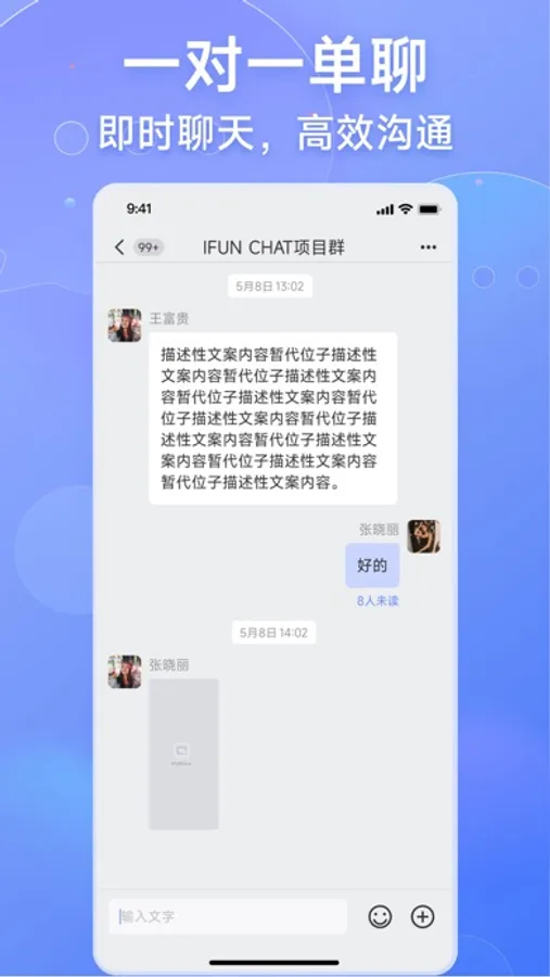 【多种功能】IFUN Chat支持单聊、群聊可以满足企业内部沟通和协作的需求。