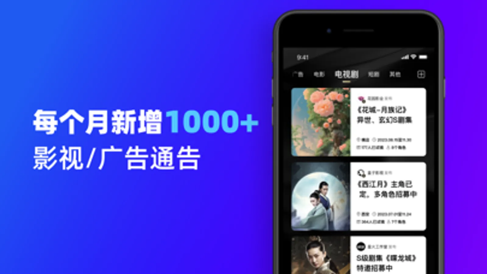新通告每月新增3000+个优质通告,涵盖电影、电视剧、网剧、广告、短剧等多个领域。轻松查看通告信息,了解项目细节,在线试镜报名。