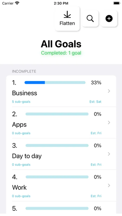 Track your progress with our intuitive interface, marking steps as complete when you've achieved them. With Goal Wizard, you'll always know what needs to be done next, and you'll get the satisfaction of seeing your progress in real-time.
