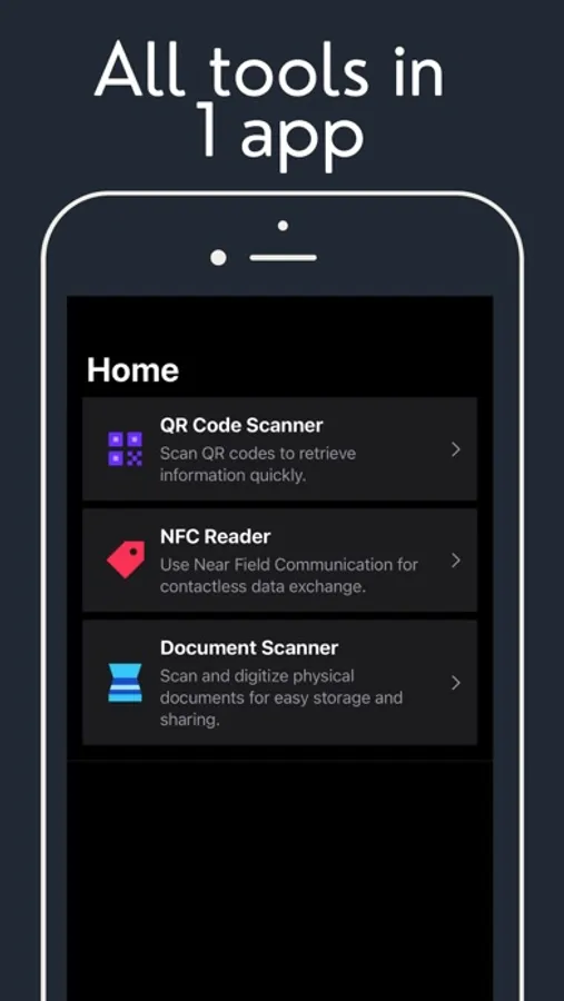 Unlock the power of seamless scanning, the all-in-one solution designed to elevate your productivity to new heights. Our app ingeniously combines NFC (Near Field Communication), QR Code scanning, and advanced document reading capabilities into one efficient, user-friendly package. Whether you are a professional on-the-go, a student, or anyone looking to streamline their scanning tasks.