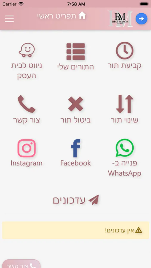 באפליקציה אפשר לקבוע תור, לנווט באמצעות Waze ולפנות אליי באמצעות WhatsApp.