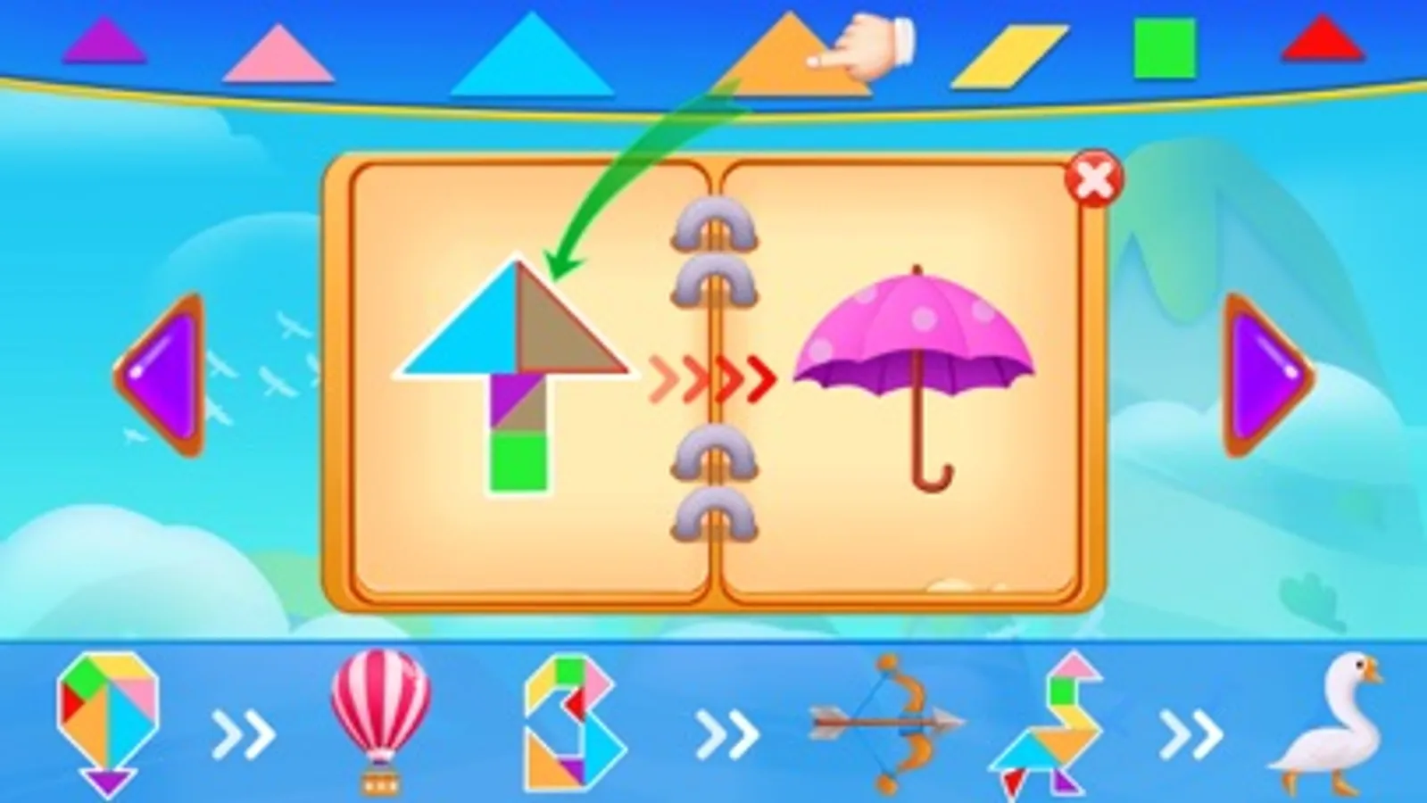 Tangram puzzle: use different shapes of tangram to assemble different items, such as turtles, scissors, hair dryer and so on to help the floret fairy through obstacles
