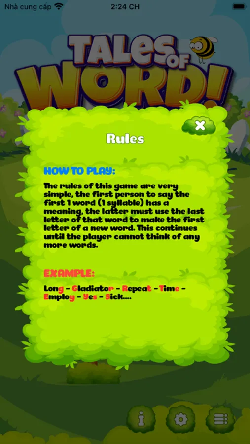 With thousands of diverse words, Tale Of Word will take you on a journey through the world of words. Your task is to connect the last letter of a word with the beginning of the next word to form a logical sequence. Through each turn, you will face different challenges, from finding the most suitable word to understanding more complex word concepts.