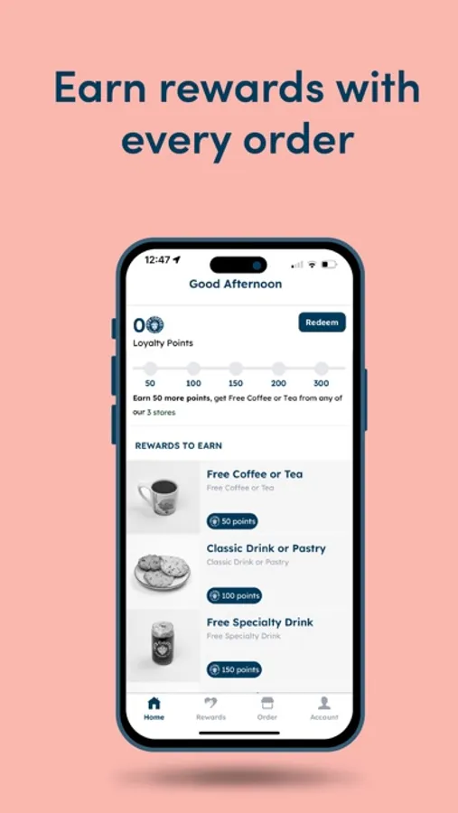- Join our loyalty program to start earning rewards—including free drinks, food, and select merchandise.