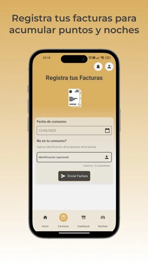 Ingreso de facturas: Nos importa cada dólar que inviertes con nosotros. Por eso, te permitimos ingresar tus facturas directamente en la aplicación. Cada factura que ingreses se convierte en puntos que puedes acumular.