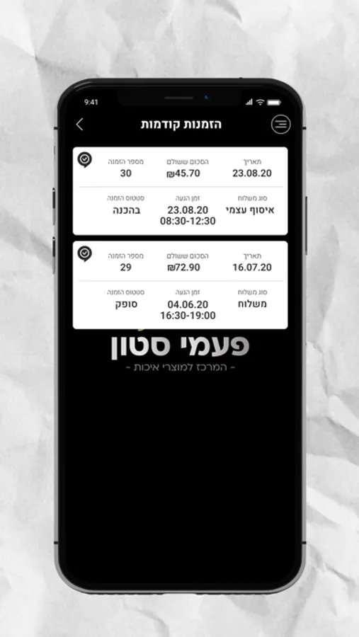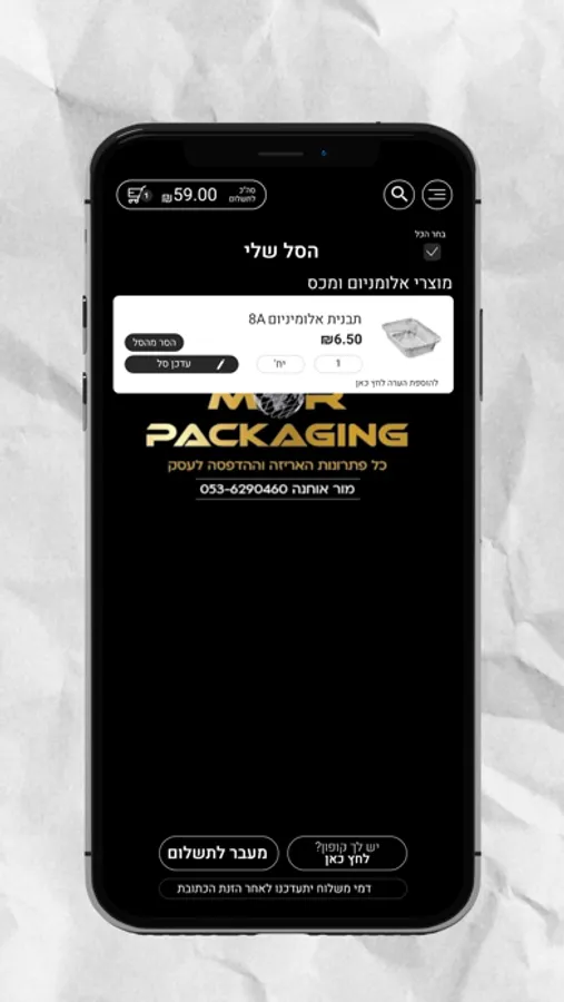 ניתן לבצע הזמנות ומשלוחים ישירות מהאפליקציה MOR PACKGING.