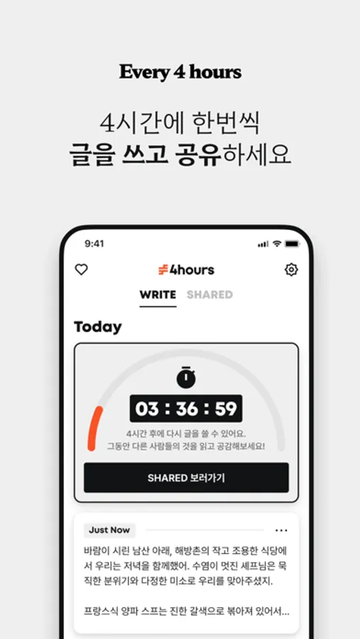 - 4시간에 한 번씩 새로운 글을 기록할 수 있어요.