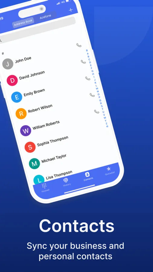 5. Gain seamless access to both your mobile contacts and the contacts stored on the Acefone portal with our Contacts feature