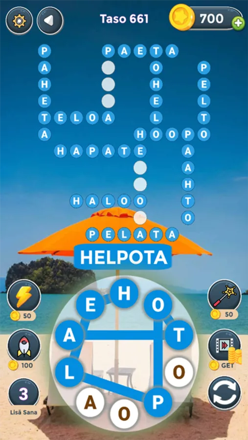 Minulla on yksi sanapala. Tämä sanapeli, nimeltään Sanapeli Finnkino, tarjoaa jännittävän pelikokemuksen. Peli on suunniteltu kehittämään kielitaitoasi ja laajentamaan sanavarastoasi. Peli sisältää palapelejä, joissa on erilaisia kirjainpalikoita eri tasoilla. Tarkoituksena on yhdistää nämä palikat oikeiden sanojen muodostamiseksi ja ratkaista palapelit.