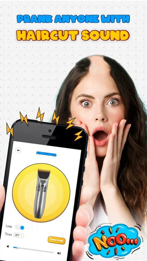 This fake razor prank feature includes authentic clipper sounds. Its sound is modeled to real hair razors and changes when the device is moved above someone's head. With this razor prank shaving feature, your friends will really think that their hair has been cut. When you witness their surprised and angry expressions, you can't stop laughing!