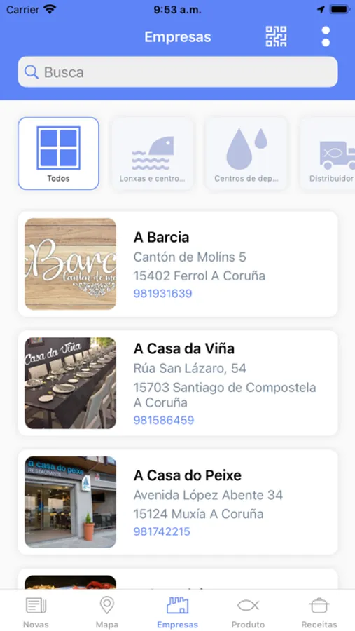 — Coñecer e localizar as lonxas e empresas certificadas pola marca