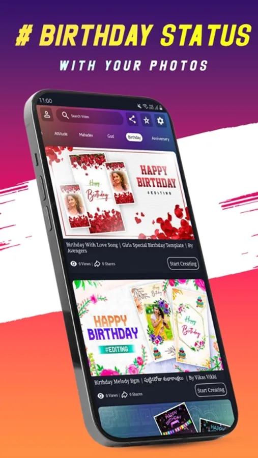 Unlimited video themes : lyrics, birthday, love, week days, friendship, anniversary, festival, attitude, family, sad, nature, magic,reels, beat, name art.
