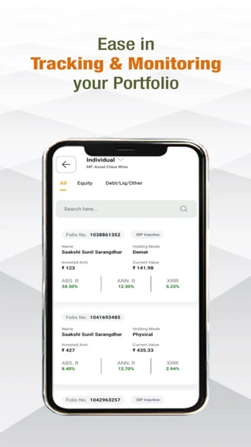 TRACK & MONITOR: Access real-time tracking of Order Status & Mutual Fund Portfolio. REPORTING: Quick access to your Mutual Fund Portfolio Reports KYC / HOLDING MODE: Online KYC registration option provided. No separate KYC is required for Clients who are already KYC Compliant, Units are in physical mode hence no Demat and Trading account is required. Do not miss out on the opportunity DOWNLOAD THE APP NOW For more info Contact RM / Customer Support / Email: customersupport@rathi.com / Call 1800 420 1004 / 1800 121 1003 Happy Investing