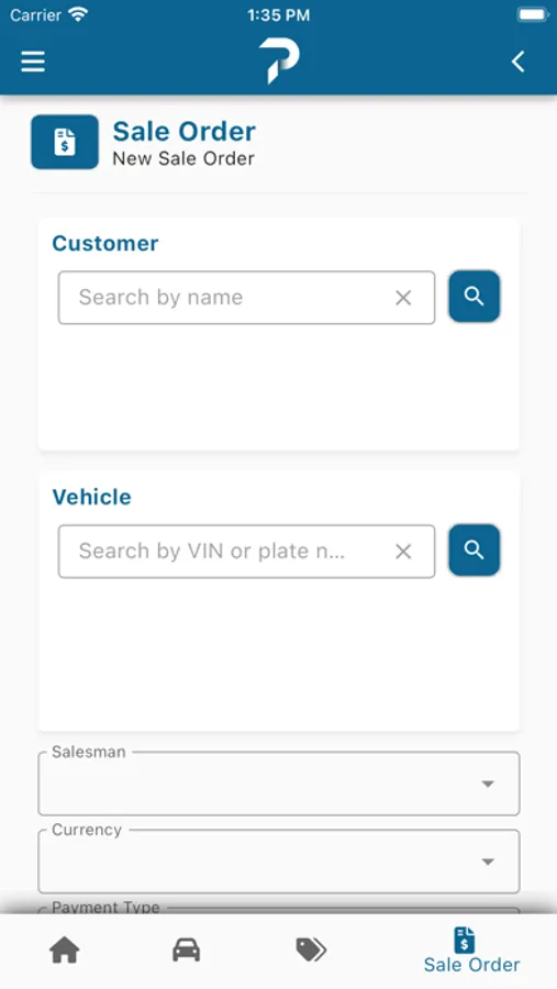 Making new reservations allow users to select a vehicle, quote a price, define the down payment required and give a promised delivery date.