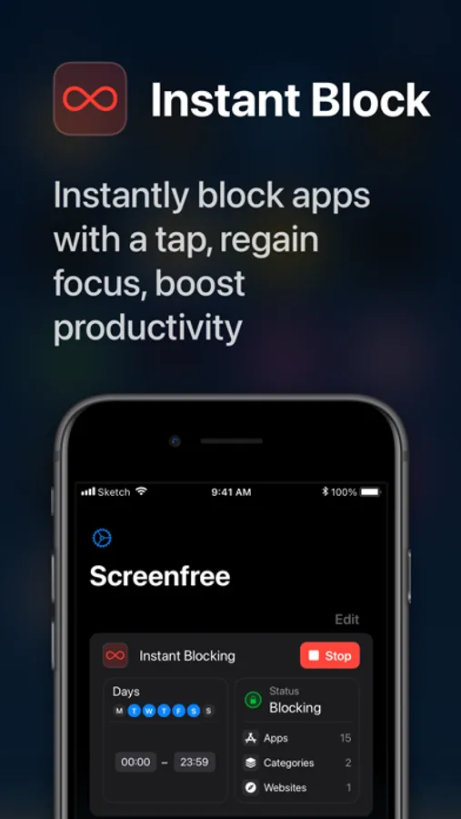 Instant Blocking: Tackle entire categories of apps with a single tap. Block all social media or gaming apps with ease, ensuring that you stay on track without wasting valuable time.