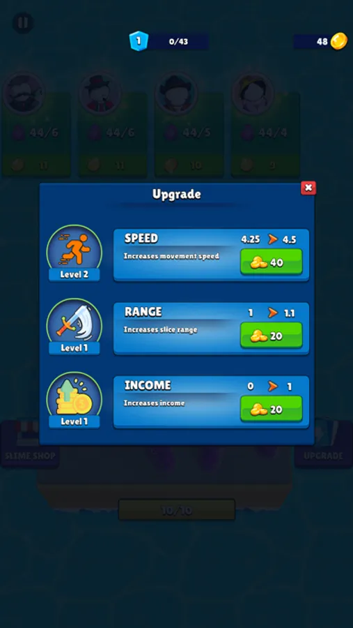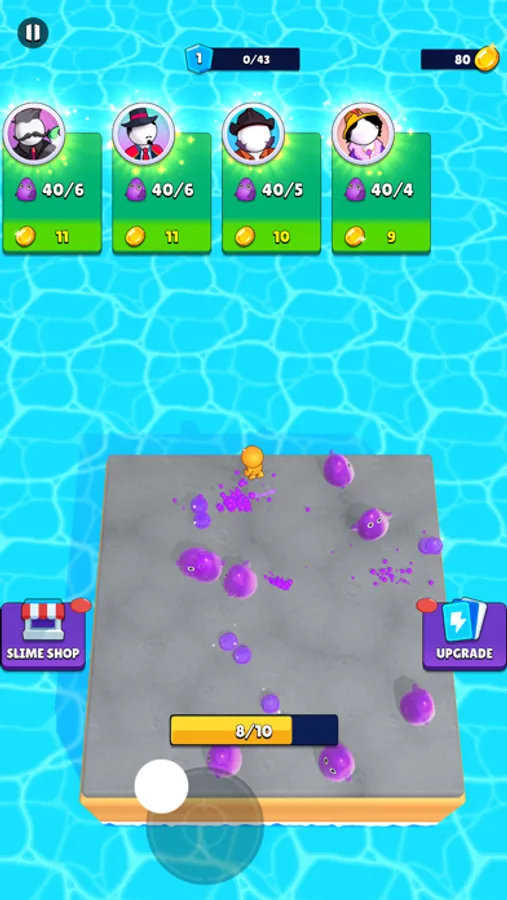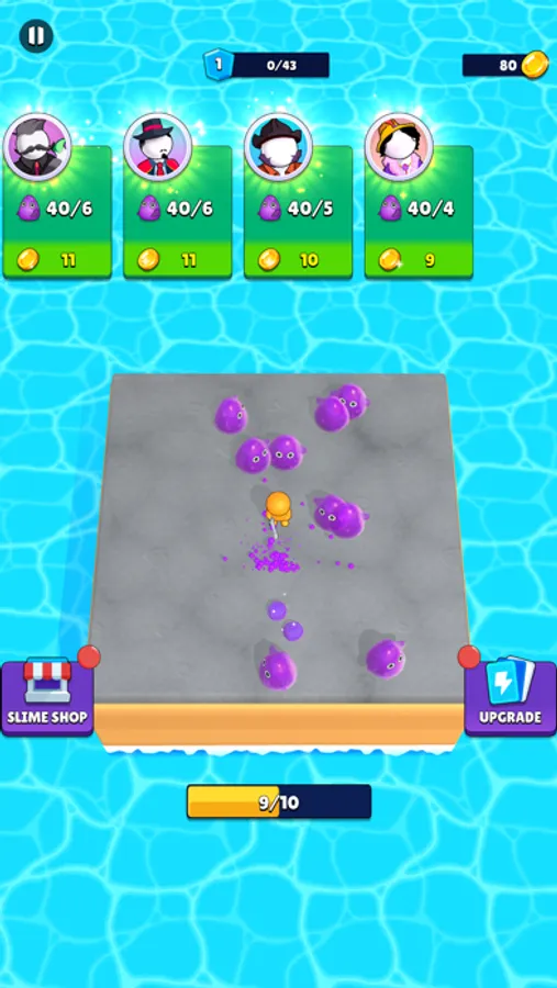 Cut the slime, sell the slime they want to customers, earn money, use upgrades, increase the number of slime you will earn per kill from the slime shop and win the game!