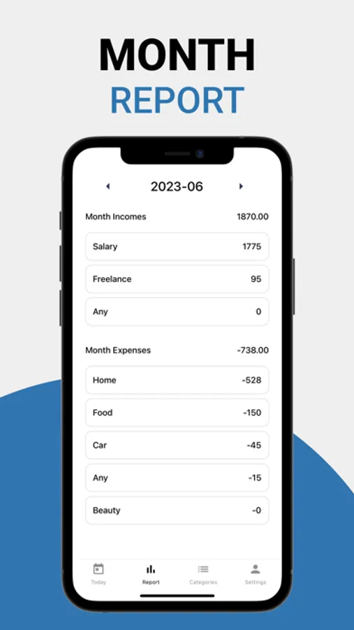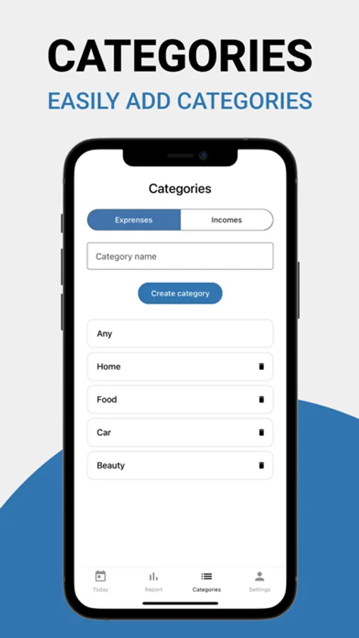 Create categories for expenses and incomes for better visualization of where your money goes.