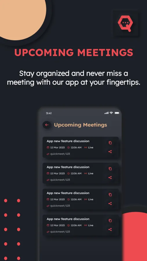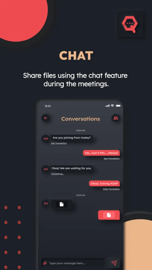 With Quick Meeet, organizing meetings and communicating with others has never been easier. Experience the convenience of instant meetings, secure chats, and real-time translation, all within one powerful application.