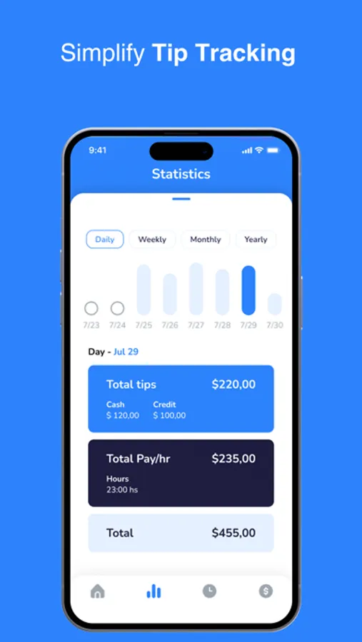 Our user-friendly interface makes it a breeze to input your tip amounts, eliminating the need for manual calculations or scattered notes. Categorize your tips based on different sources, such as cash or credit cards, and add personalized notes for each entry. Stay organized and retrieve specific details whenever you need them.