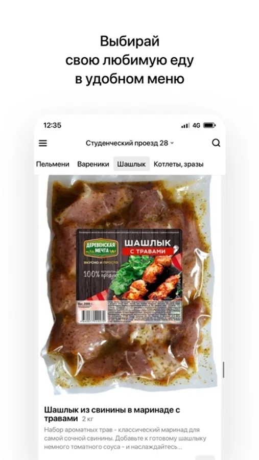 Пельмени, чебуреки, вареники, сырники, котлеты, голубцы, манты, колбаски и много другое. Используем только отборную говядину и свинину. Делай заказ через приложение и радуй себя и своих близких вкусными и полезными продуктами. А с нашим приложением заказ стал еще проще и удобнее.