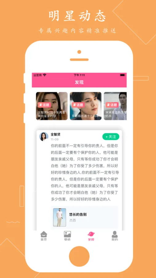 2、每周星推:发现推荐优质、有趣的偶像新星。