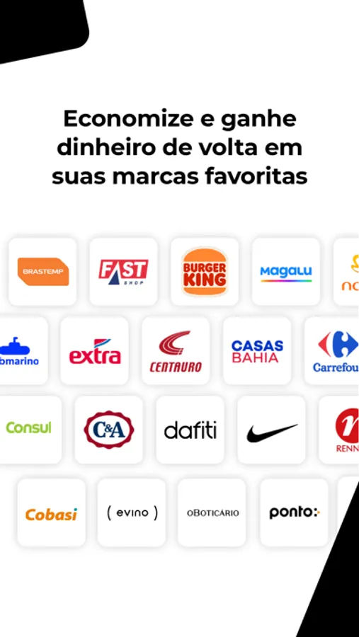 Navegue por um cardápio de ofertas com marcas parceiras de diversos segmentos.