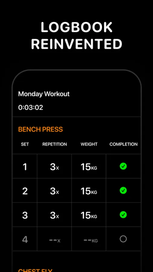 A simple and intuitive way to track your workouts, exercises, sets, repetitions and weights.