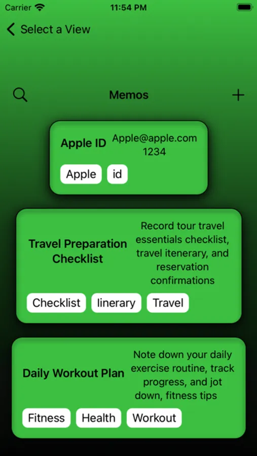 The second view is a tag memo view, which allows you to include tags when you write memos. With stored tags, you can more easily view and edit saved memos.