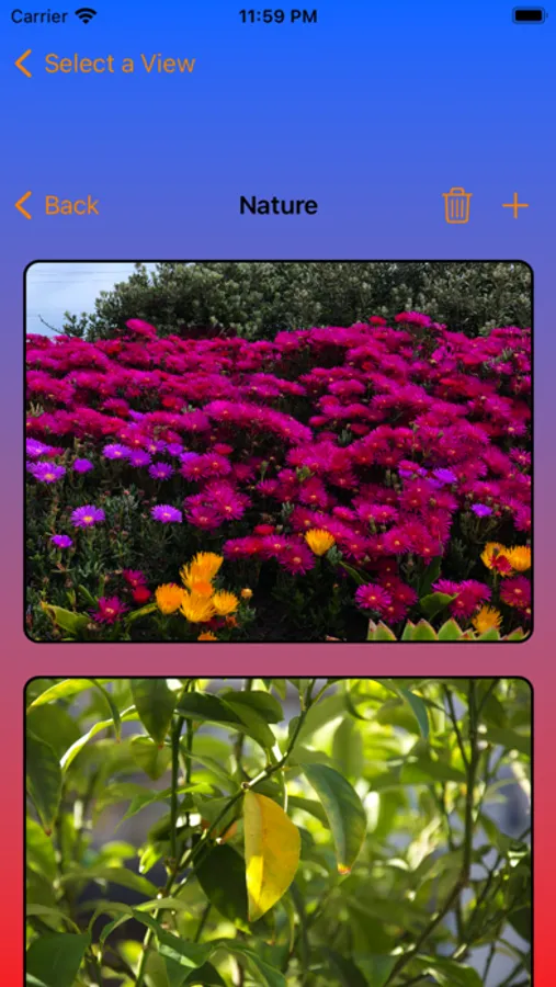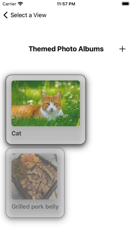The fifth view lets you create themes and add photos to them, helping users organize their photos effectively.