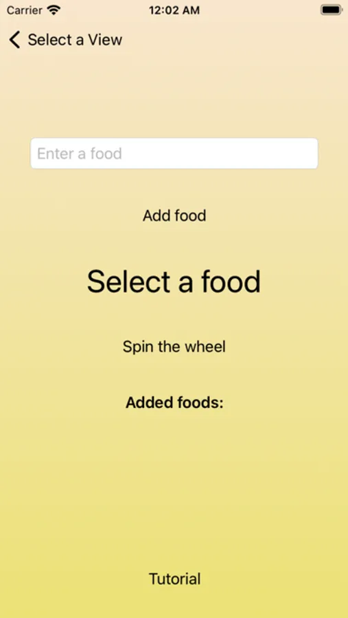 The eighth view assists those struggling to choose what to eat by offering a feature that randomly selects a result.