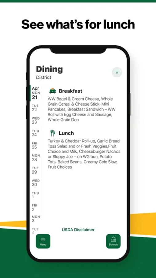 Within the dining section, you’ll find an easy to navigate, weekly menu, sorted by day and meal type.